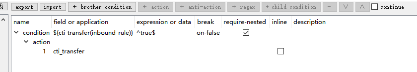 如果编码不匹配等呼入直接拒接的,可能还没进入动作就失败了,可以在拨号方案动作是set,和export 行勾选inline ,这样就避免这个问题。