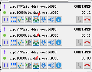 : 电话会议,三方通话等,按下这个按钮就开始混音。如下图3方混音: